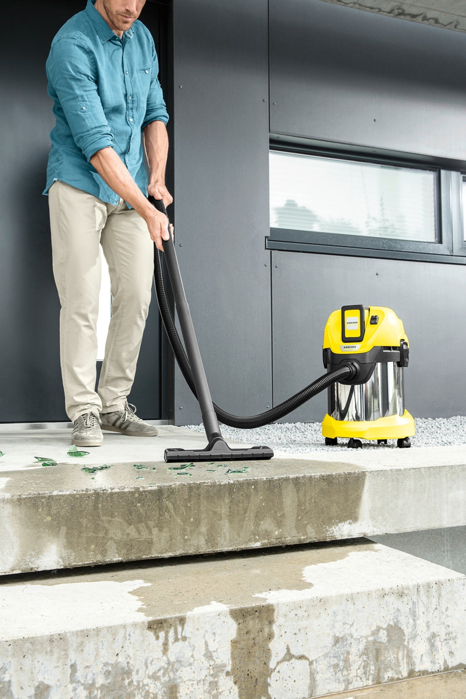 Ingen sladd, men ett batteri, 17 l tank i rostfritt stål och tillbehör för större flexibilitet: detta är den batteridrivna grovdammsugaren för vått och torrt: WD 3 Premium Set 36 V.