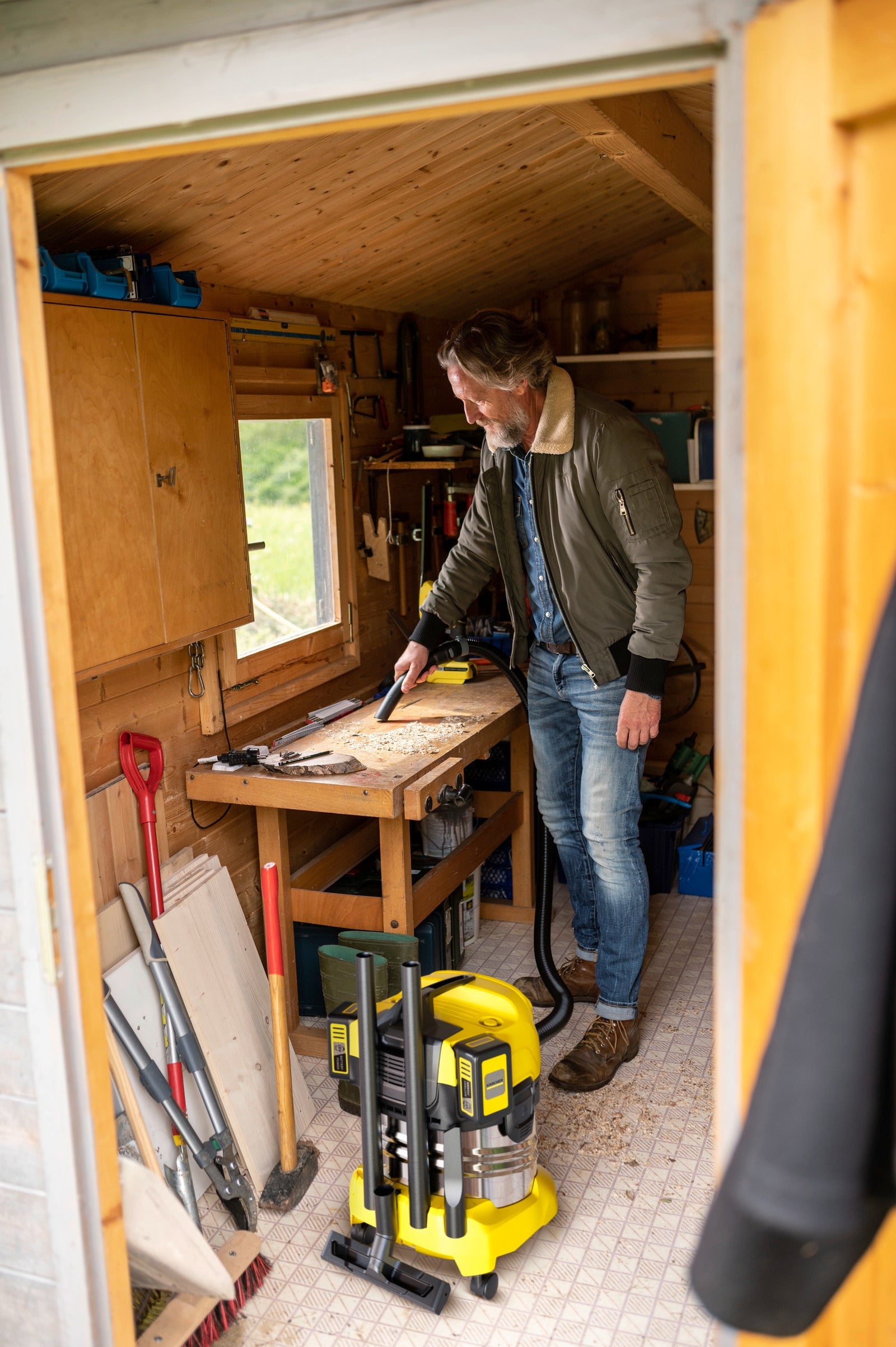 Två 18 V-batterier driver en kraftfull 36 V-motor: WD 4-18 S Dual Battery våt- och torrdammsugare har en 20-liters rostfri ståltank, en 2,2 meter lång sugslang, blåsfunktion och planfilter.