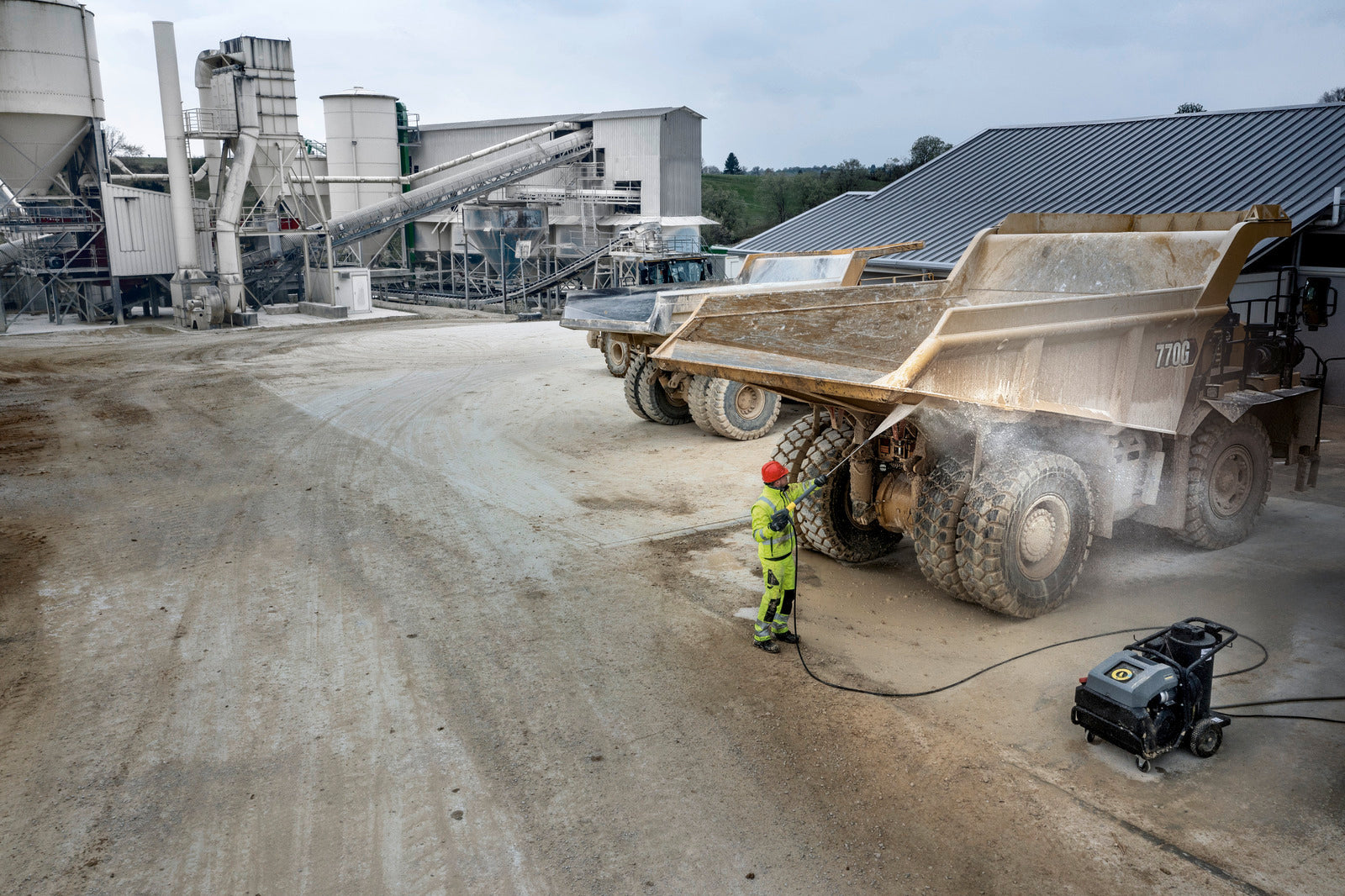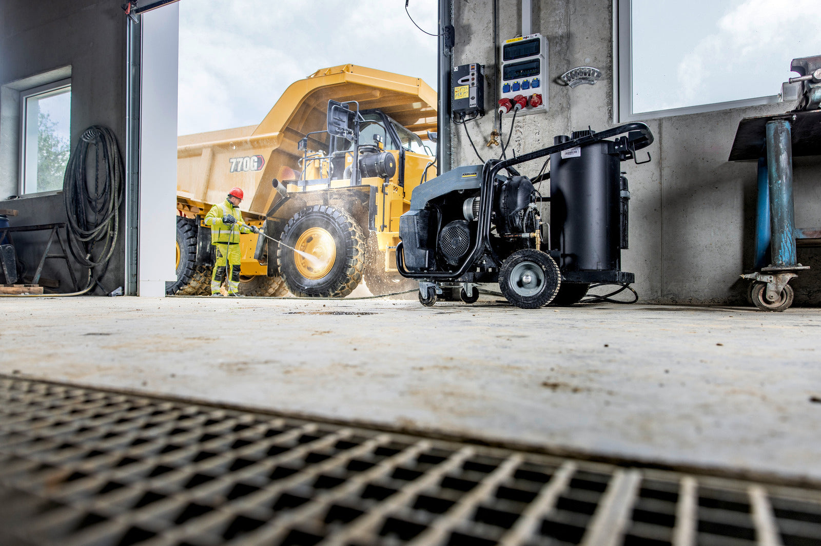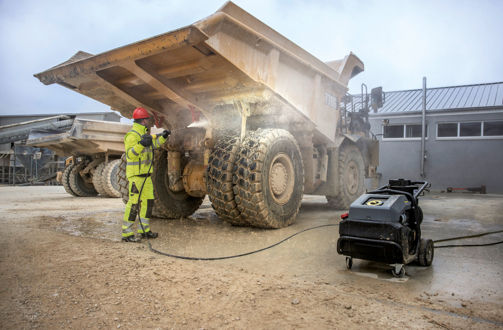 Den mobila hetvattentvätten erbjuder en mycket hög spolkapacitet på 1800 l/h och möjliggör parallell användning av två spolrör vid ett vattentryck på 180 bar.