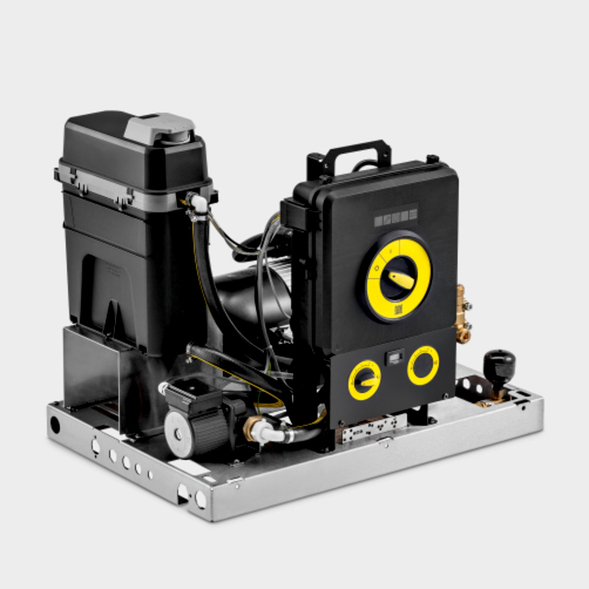 Vattentank med ventil, kalkskydd och torrkörningsskydd Mycket robust ram och hölje i rostfritt stål Boosterpump för temperaturer upp till 85°C.