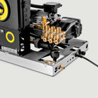 Vår stationära kallvattentvätt är ett kraftfullt val med ett flöde på 1 700 l/h och ett tryck på 120 bar, vilket gör den idealisk för kontinuerlig användning i tuffa arbetsmiljöer, exempelvis inom livsmedelsindustrin. En vattentemperatur på upp till 85 °C är möjlig vid inloppet. Både vevaxelpumpen med mässingscylinderhuvud och det rostfria stålchassit och höljet säkerställer en robust konstruktion. Högtryckstvätten har en vattentank med torrkörningsskydd och kalkskydd, där nivåindikator visar när kalkskyddet är tomt. Keminloppet har en doseringsventil med tomindikator. Den 4-poliga, lågvarviga elmotor garanterar lång livslängd. Installation, drift och underhåll är designade för enkelhet och användarvänlighet. Elektronisk övervakning säkerställer hög driftssäkerhet. Produkten kompletteras av ett omfattande sortiment av tillbehör, som kan väljas efter behov: manometer, timräknare, inlopp för andra kemikalier, automatisk tryckavlastning och fjärrkontroller.
