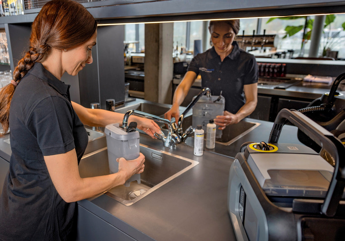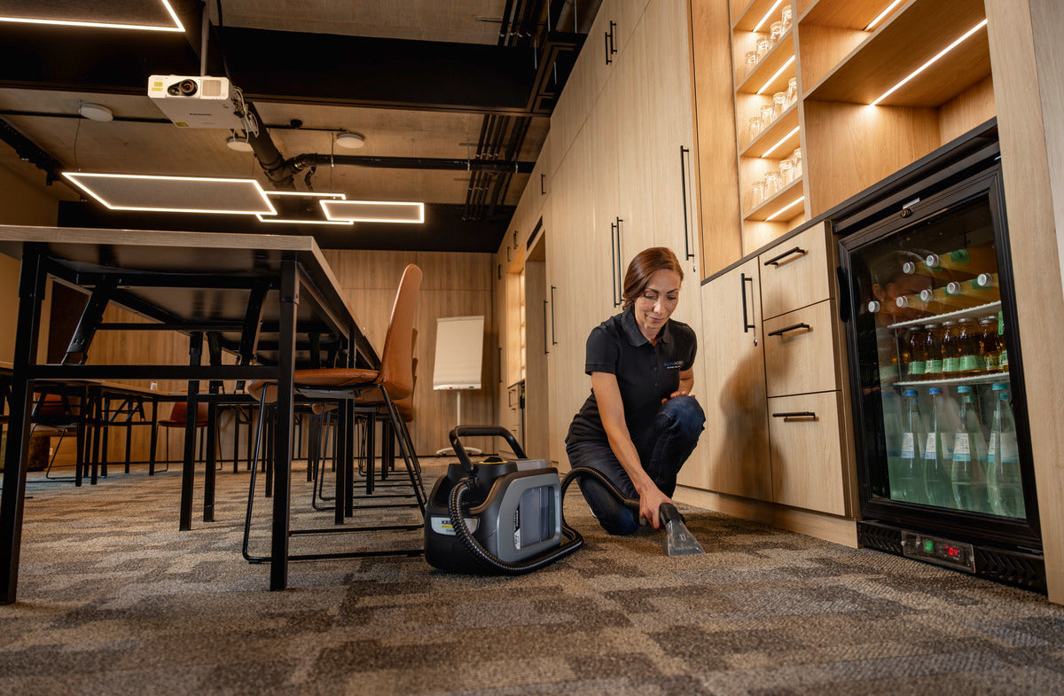 Maximal rörelsefrihet vid borttagning av fläckar ända ner till fibrerna på alla typer av textilier: en portabel, kraftfull 36 V batteridriven sprutextraktionsmaskin med ergonomiskt klädselmunstycke.
