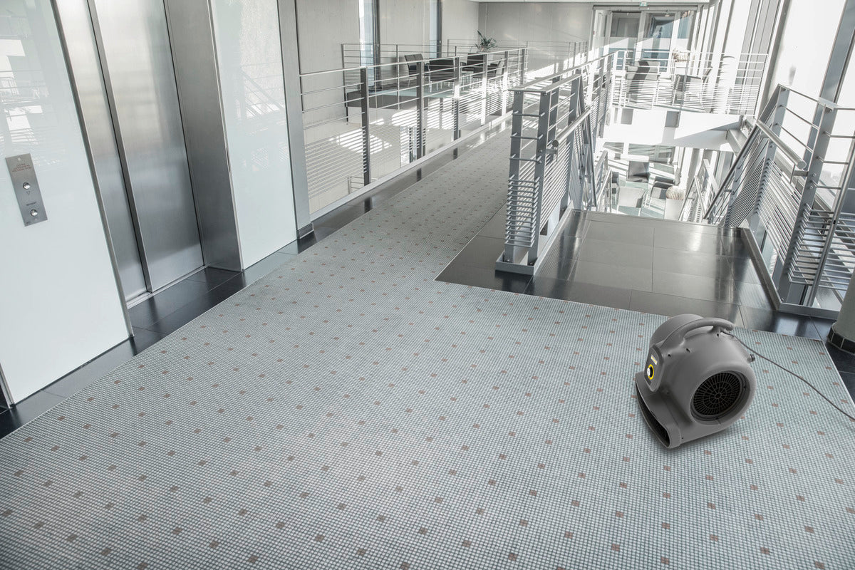 Väldigt effektiv, kompakt och långlivad torkfläkt för exempelvis påskyndande av torktiden på rengjorda textila golv med upp till 50%.