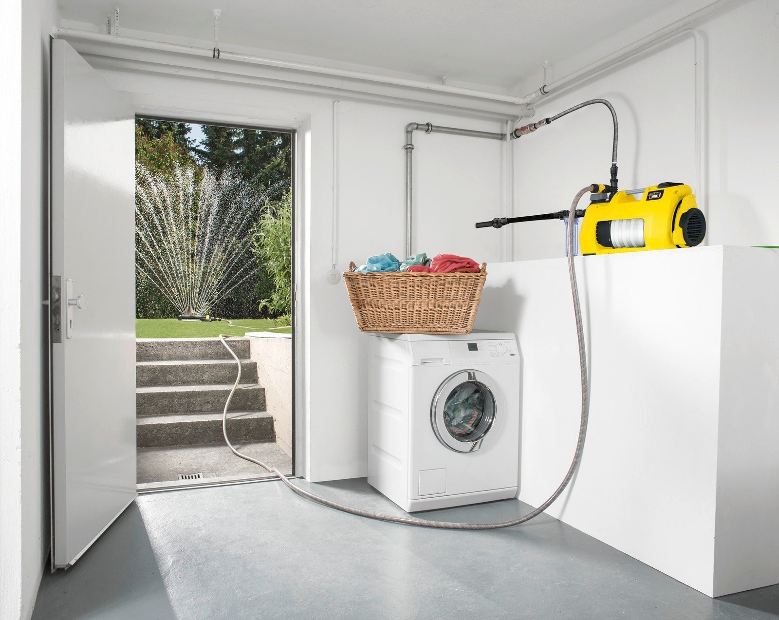 - Kan användas för flera uppgifter samtidigt, t.ex. bevattning av gräsmattan med sprinkler och samtidig bevattning av trädgården med slang.