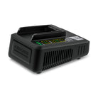 Tack vare den integrerade väggkonsolen kan snabbladdaren fästas mycket enkelt vid väggen. Snabbladdaren laddar 18V/2,5 Ah Lithium-ion batteriet till 80 % på bara 44 minuter. Den kan också användas för att ladda vilket annat 18V Lithium-ion batterie som helst från Kärchers 18V Battery Power-plattform.
