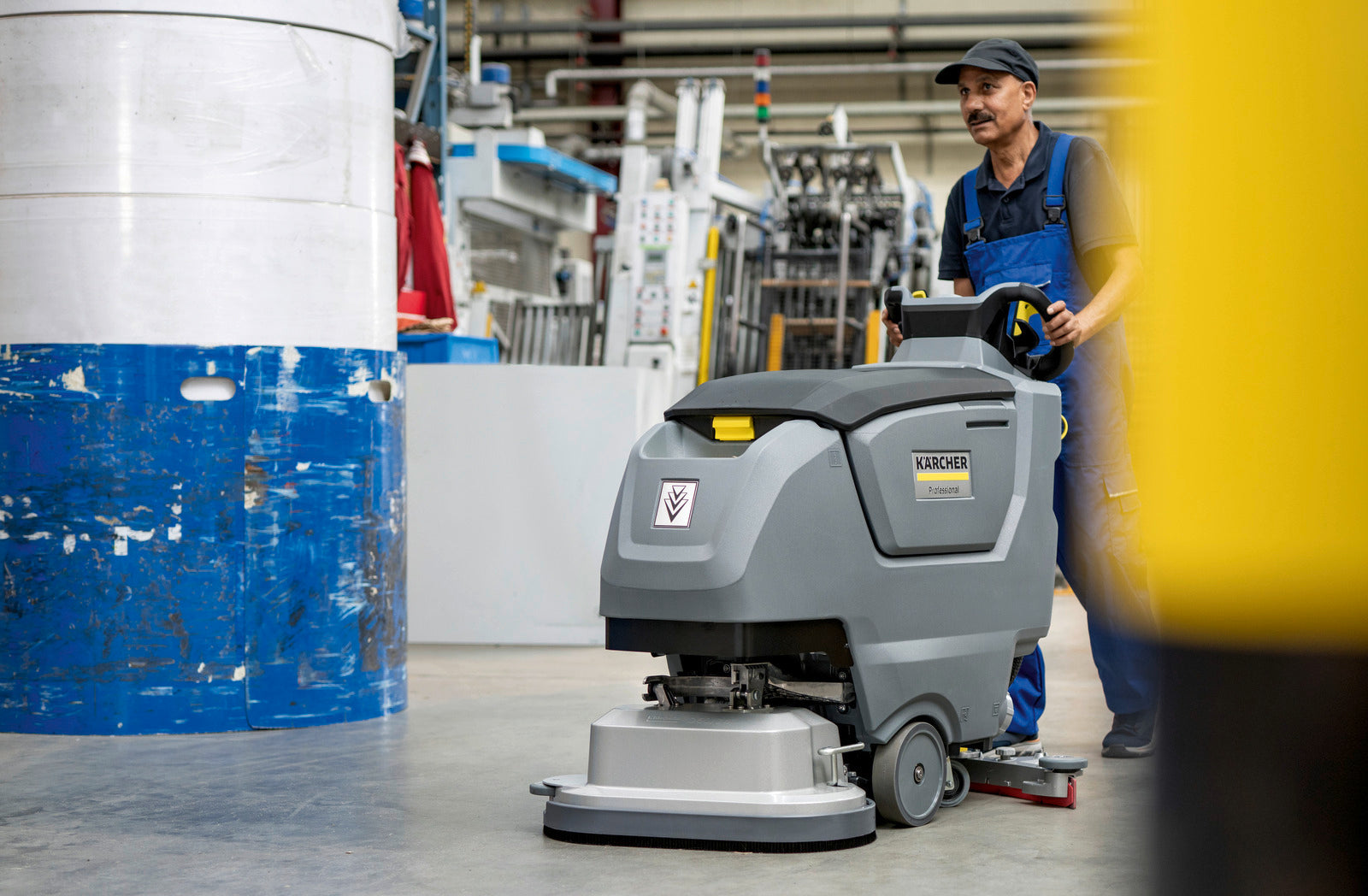Den batteridrivna skur- och torkmaskinen B 50 W Bp är idealisk för effektiv golvrengöring i alla tänkbara miljöer. Den kompakta designen ger bättre överblick och utmärkt manövrerbarhet även i trånga och svåråtkomliga utrymmen. Den självgående maskinen har en robust konstruktion med borsthuvud och sugskrapa tillverkade i hållbart gjutet aluminium. Den paraboliska sugskrapan säkerställer perfekt uppsugning, även på strukturerade ytor och i skarpa svängar. D 60 skurhuvudet möjliggör grundlig och kraftfull rengöring. Det kraftfulla AGM-batteriet ger en kapacitet på 115 Ah för lång driftstid. Hjuldriften förenklar användningen och minskar den fysiska belastningen för operatören. Avancerade inställningar och information kan enkelt styras via din smartphone med appen "Machine connect". Auto-rengöringsfunktionen möjliggör kontaktfri rengöring av smutsvattentanken, och auto-fillsystemet gör det enkelt att fylla på färskvattentanken med automatisk stoppfunktion. Renvatten kan enkelt fyllas på från vilken kran som helst med den universella påfyllningsslangen.