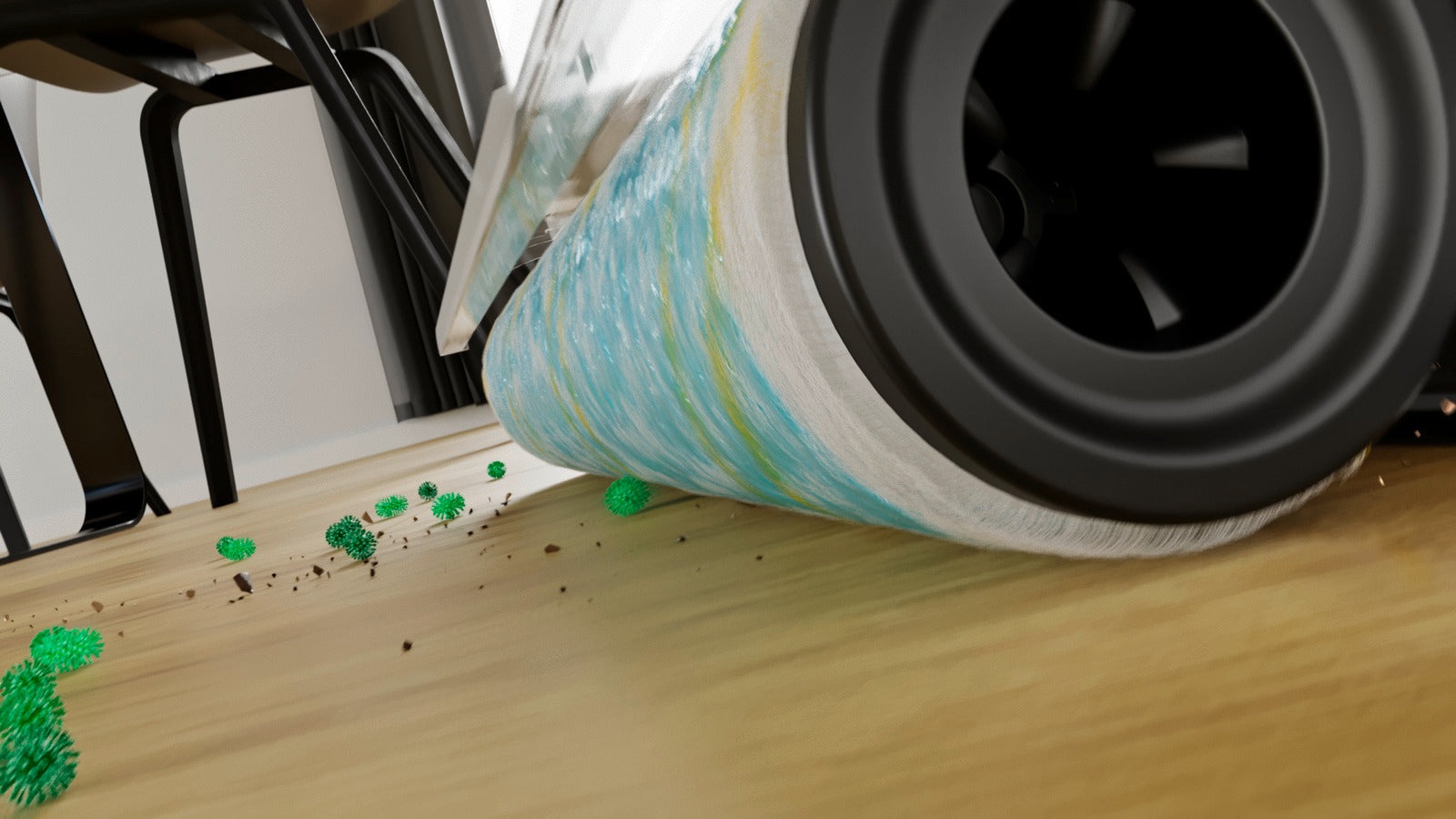 - Effektiv självrengöringsfunktion med upp till 550 rullvarv per minut – för snabb och bekväm rengöring utan att komma i kontakt med smuts.