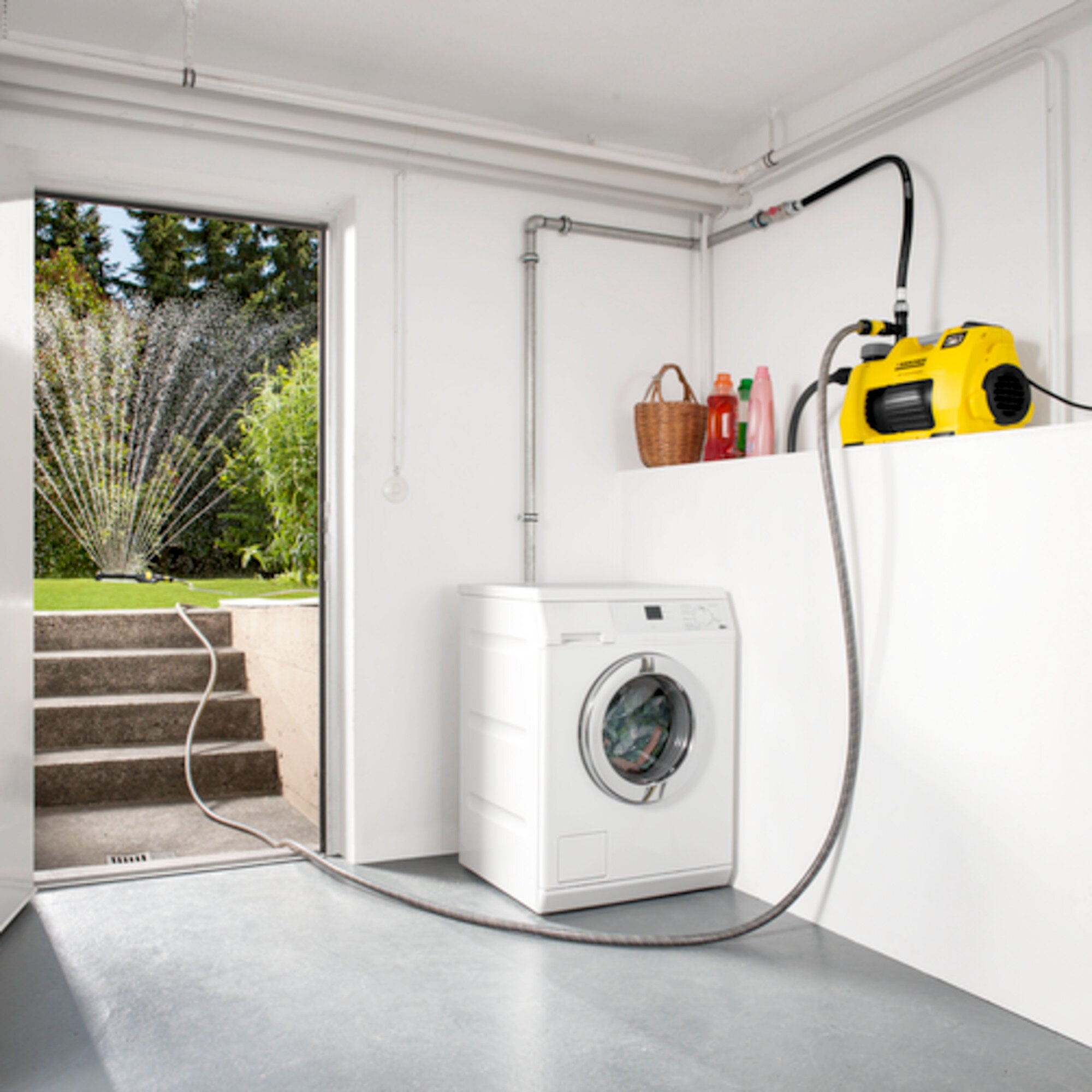 BP 3 Home & Garden är idealisk för trädgårdsbevattning eller att förse tvättmaskin och toalett med vatten alternativa källor från t.ex. cisterner. Med automatisk start- /stopfunktion. Tack vare torrkörningsskyddet stängs pumpen av automatiskt när varningslampa lyser. Den kraftfulla pumpen är underhållsfri och har imponerande konstant tryck. För extra komfort ingår fotomkopplare, två utgångar för samtidig användning av flera enheter samt ljudabsorberande gummifötter. För pålitlig drift ingår förfilter och backventil. Högkvalitativa material garanterar lång livslängd. Kärcher erbjuder även förlängd 5-års garanti.