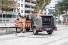 Vår robusta och mobila, ouppvärmda trailer HD 9/23 Ge Tr1 klarar alla krävande arbetsuppgifter med högtrycksrengöring som ofta förekommer inom t.ex. byggbranschen eller i det dagliga arbetet i kommunal verksamhet – även om extern ström- och vattenförsörjning saknas. Maskinen är helt fristående tack vare en kraftfull och driftsäker Honda bensinmotor (EU STEG V) och en vattentank på 1 000 liters. Med ett arbetstryck på 230 bar och ett vattenflöde på 930 liter/timme finns tillräcklig rengöringskapacitet för även hårt sittande smuts. Maskinen har dessutom fördelaktiga egenskaper som exempelvis det ergonomiska spolhandtaget EASY!Force. Enkel hantering och många förvaringsmöjligheter gör maskinen enastående användarvänlig. På begäran finns nu även andra konfigurationsvarianter av maskinen, som t.ex. en Cab-version med inbyggd slangvinda baktill.