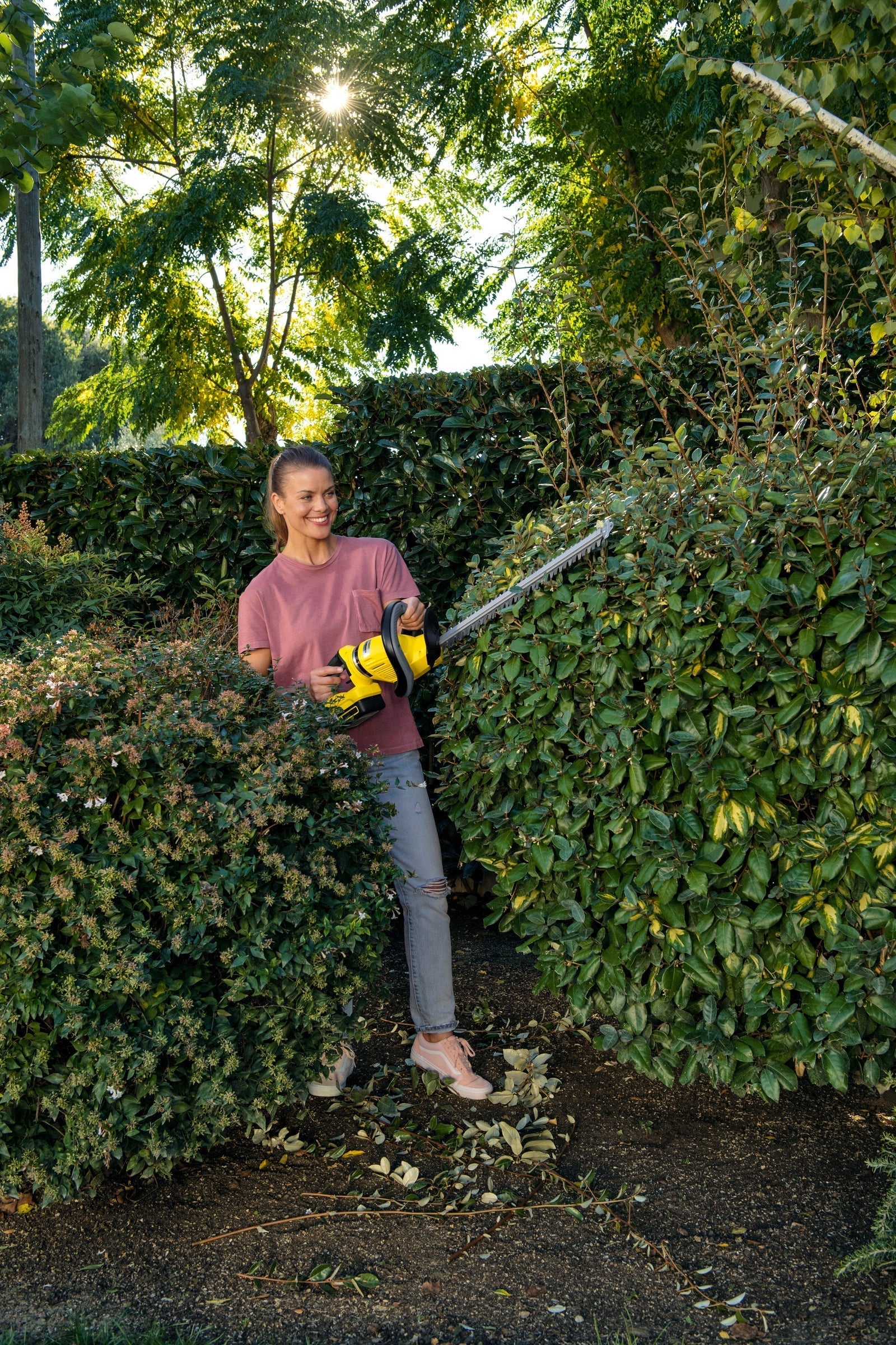 Den batteridrivna häcktrimmern HGE 18-50 gör häcklippningen enklare än någonsin. Handtaget som kan roteras i 180 grader hjälper till för att förhindra trötthet i axlar och armar från olika arbetsställningar, exempelvis vid vertikal klippning. Lövfösaren fungerar också som en extremt användbar assistent. Den ser till att klippresterna istället för att falla in i häcken sveps ned och därefter enkelt samlas upp från marken. Svärdet är diamantslipat för ett exakt klippresultat. Svärdet är också utrustat med ett integrerat svärdsskydd och lyftögla. Detta skyddar byggnader, golv och, givetvis, själva svärdet från skador – och gör det möjligt att hänga upp produkten på väggen för att spara utrymme.Ytterligare en fördel med den batteridrivna häcktrimmern är sågfunktionen som gör det enkelt att ta hand om tjockare grenar. Häcksaxen har även ett anti-blocksystem för arbete utan avbrott. 1 st 18 V / 2.5 Ah batteri och laddare medföljer.