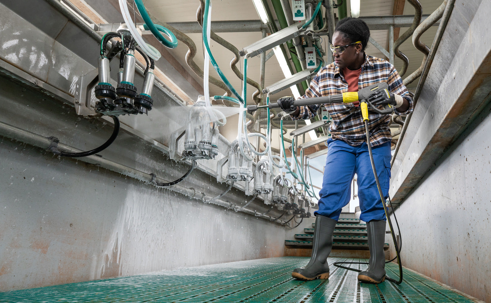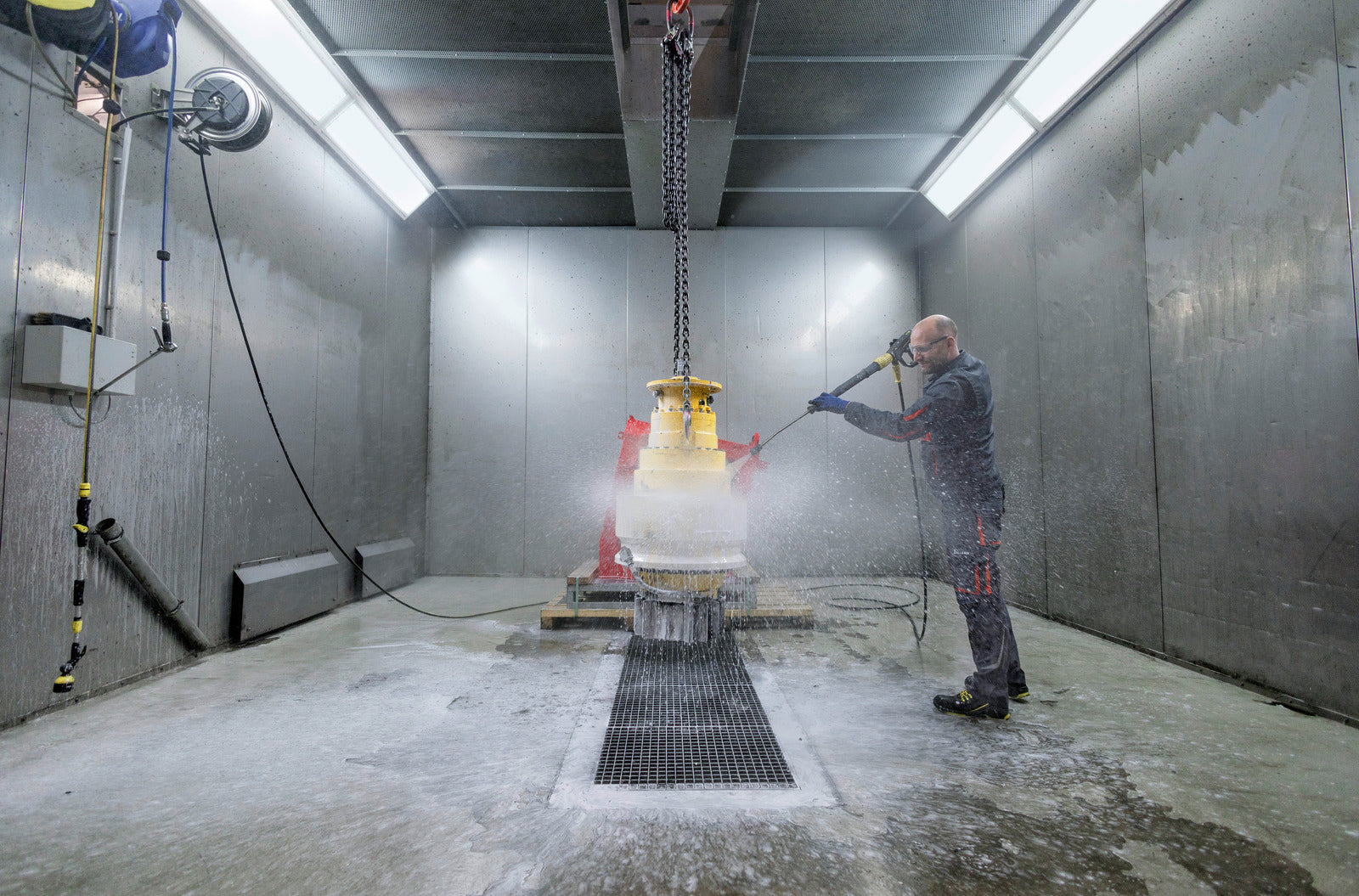HDS 10/21-4 St är en stationär hetvattentvätt med oljepanna som levererar extra högt tryck: upp till 210 bar gör även det mest envisa smutsen lätt att ta bort. Den 4-poliga, lågvarviga elektriska motorn genererar hög effekt för krävande kontinuerlig användning. Den robusta vevaxelpumpen med brons cylinderhuvud levererar upp till 1000 liter vatten per timme. Vattentanken har inbyggt kalkskydd och ett vattenfilter för att skydda pumpen. Tvättmedlet tas upp och doseras exakt via en ventil, och en indikator visar när tvättmedlet börjar ta slut. Elektronisk övervakning av oljepannan och den övergripande tekniken säkerställer hög driftssäkerhet. En intuitiv rotationsomkopplare eller valfri fjärrkontroll gör driften enkel, och service- och underhållsarbete är också användarvänligt. Med ett brett utbud av tillbehör som finns tillgängliga kan HDS 10/21-4 St anpassas för att passa ett stort antal rengöringsuppgifter. Maskinen kan kompletteras med manometer och timräknare, en andra doseringsenhet för tvättmedel samt ett tryckavlastningssystem.
