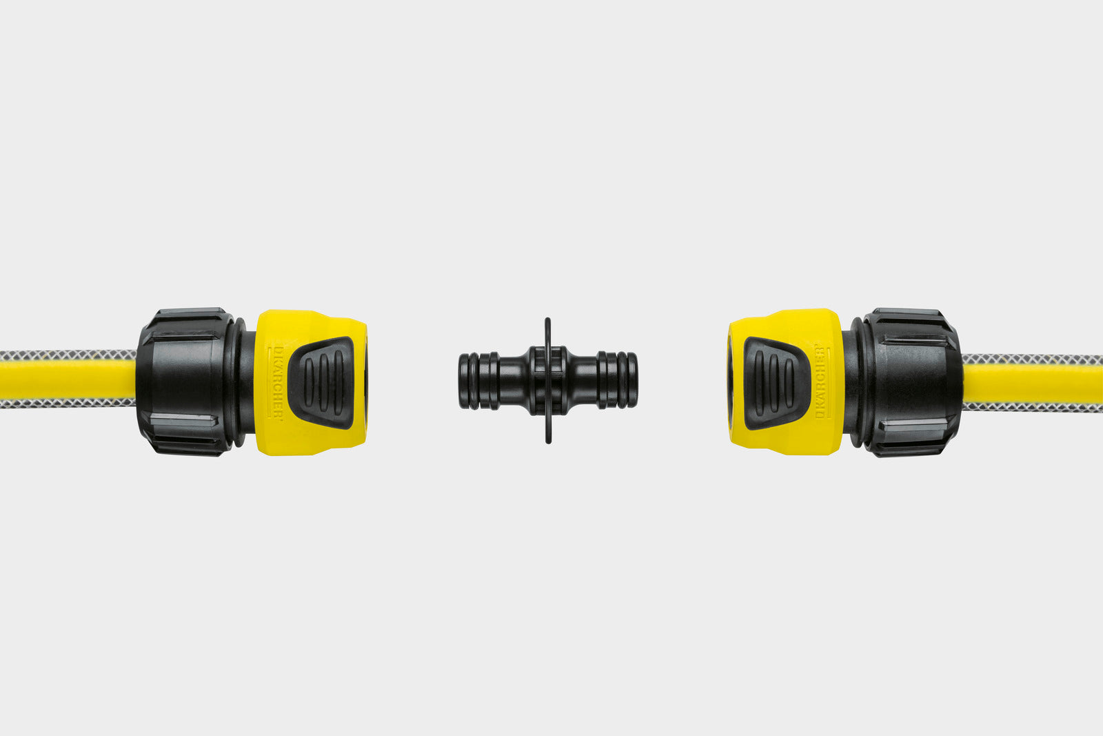 Ett effektivt bevattningssystem kräver tillförlitliga krankopplingar, slangkopplingar och slangar. Kärcher erbjuder ett komplett sortiment av tillbehör för in- och frånkoppling samt reparation av bevattningssystem. Till exempel tvåvägskopplingen för koppling av två slangar. Denna högkvalitativa universella tvåvägskoppling passar till alla standardslangar för trädgård och är ergonomiskt utformad för enkel hantering. Tvåvägskoppling som är kompatibel med de tre vanligaste diametrarna för slangar och alla tillgängliga klicksystem.