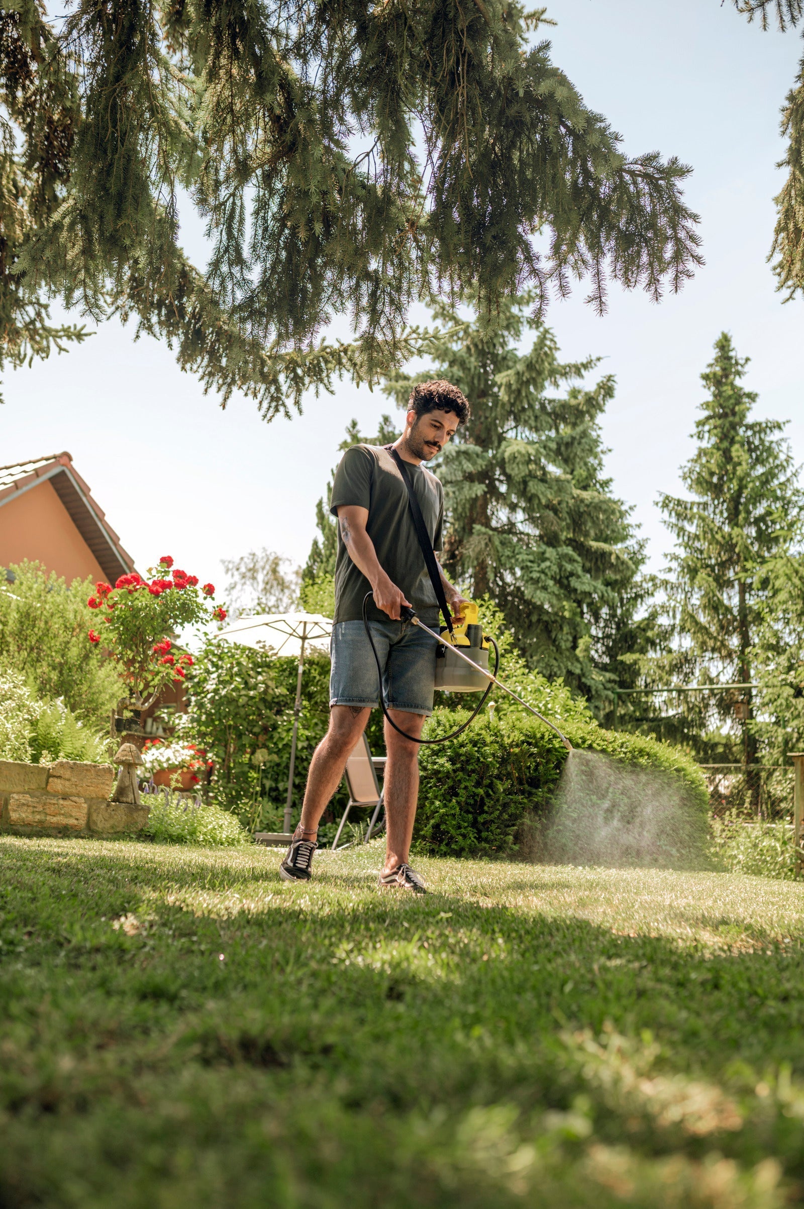 Ingen tröttsam manuell pumpning: Med den batteridrivna trycksprutan PSU 4-18 sköter du växterna i trädgården med sprayfunktion, gödningsmedel eller strålar med en knapptryckning. (Exkl. batteri och laddare)