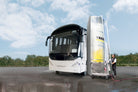 RBS 6000 är en manuell fordonstvätt med en borste avsedd för nyttofordon. Dess design och konstruktion bygger på Kärchers expertis inom fordonstvätt. Fokus har lagts på skonsam borttagning av trafikfilm med roterande tvättvalsar. Maskinen är den idealiska lösningen för snabb och grundlig allroundtvätt (sidor, front och bakdel) av små fordonsparker. I varje tvättprocess där man använder vatten och rengöringsmedel under tvättcykeln skapas en aggressiv miljö. Av denna anledning lägger Kärcher särskild vikt på att ge anläggningens komponenter ett optimalt skydd mot slitage och rost. Därför består ramen av en aluminiumsvetsad konstruktion. Den kompakta konstruktionen på ett stabilt chassi med 6 styrvalsar säkerställer god stabilitet. RBS 6000 är enkel att flytta med hjälp av 4 länkhjul (varav 2 kan spärras). Två ytterligare hjul garanterar god stabilitet och riktning under tvättprocessen. Borstrotationen ger stöd för framåtrörelsen längs fordonet. Anläggningen kombinerar – efter förslag från industridesigners – ett elegant yttre med hög driftsäkerhet och optimal hantering. Detta bekräftas av det erkända tyska provningscertifikatet ”GS-Gütesiegel”. Borstarna (höger- och vänsterrörelse) regleras med hålldon på båda sidor. Vattentillförseln kan stoppas med en skjutkran. Rengöringsmedel tillsätts i vattnet med en doserpump. Handtag med plastgrepp, ram med rundade kanter och distansrullar skyddar användaren och fordonet. Borstskaftet har dubbla stöd och drivs av en kugghjulsmotor med självspännande kedjedrift. Den vit- och gulfärgade borsten (driftdiameter cirka 1 000 mm) har profilerade polyetenborst i individuellt utbytbara sektioner.