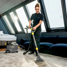 Tack vare sin utmärkta sugförmåga ger den professionella Puzzi 8/1 Adv från Kärcher ett mycket gott och hygieniskt rengöringsresultat, samtidigt som textilytor snabbt blir klara för användning igen. Maskinen sprayar rengöringslösningen djupt ner i textilfibrerna och suger sedan upp den tillsammans med den upplösta smutsen – perfekt för rengöring av möbler, mattor och andra textilytor. Den robusta och kompakta konstruktionen ger lång livslängd och hög kostnadseffektivitet – idealisk för exempelvis städföretag, hotell- och restaurangbranschen eller för rengöring av fordonsinteriörer. Maskinens lock, möbelmunstycke och golvmunstycke är genomskinliga för att ge bättre insyn i det smutsiga vattnet. Ett inspektionsfönster i handtaget ger ytterligare kontrollmöjligheter. Puzzi 8/1 Adv har låg vikt och ett ergonomiskt bärhandtag som gör att den enkelt kan bäras med en hand. Stora knappar som kan manövreras med hand eller fot ökar användarvänligheten ytterligare.
