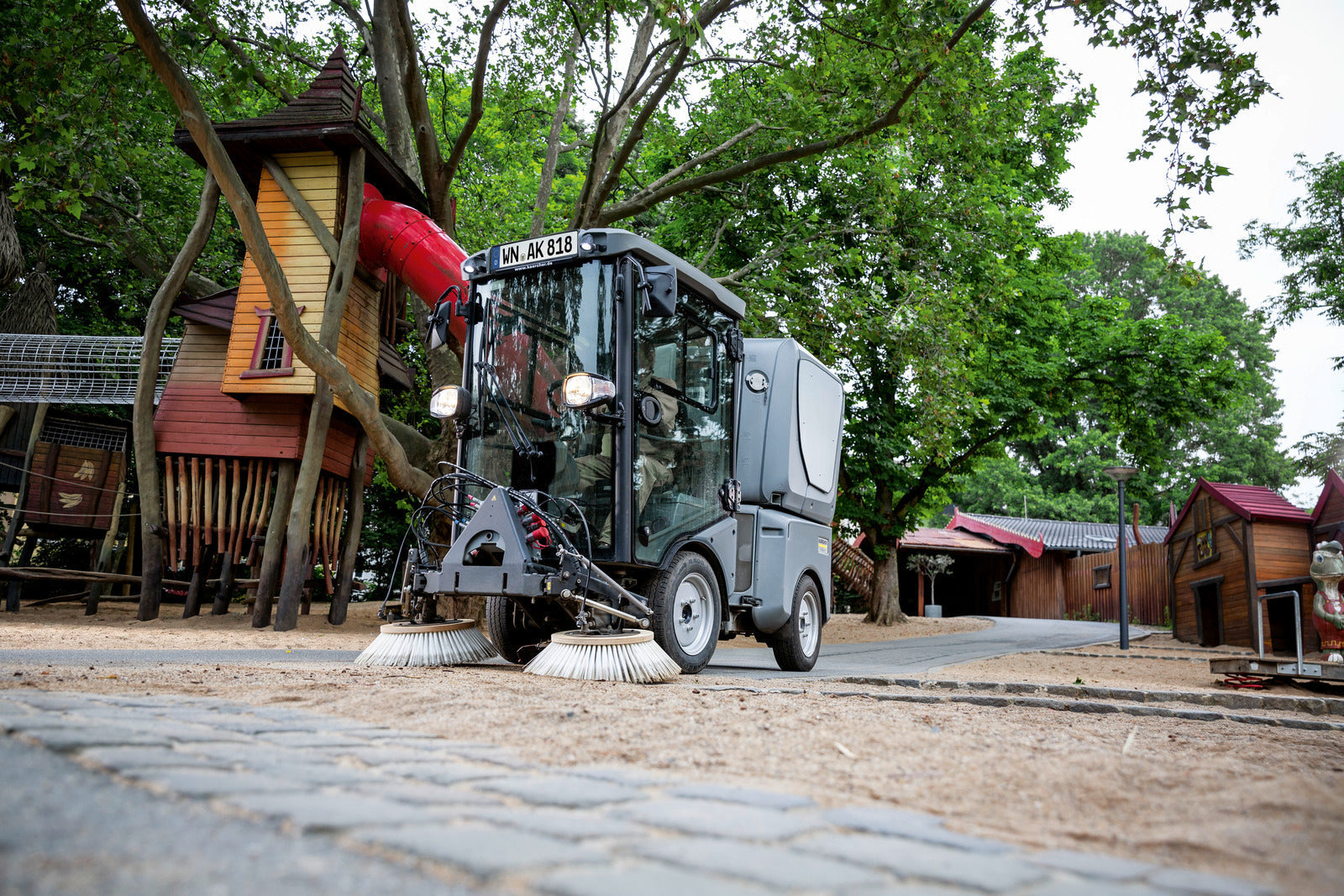 Med MC 80 tillämpas tekniken från mycket stora maskiner nu i klassen kompakta sopmaskiner. Behållaren på 800 liter för sopat material med tillhörande vattencirkulationssystem har t.ex. tagits fram med hjälp av datorstödda CFD-simuleringar, 2-borstsystemet har individuell borstkontroll och lyftning, den raka sugkanalen förhindrar effektivt igensättningar och sugmunnen är placerad i hjulkonturen där den är skyddad mot slag. Den utmärkta standardutrustningen kan kompletteras med diverse tillbehörssatser, som en tredje sidoborste, en ogräsborste, flexibel slang eller högtryckstvätt. När det gäller arbetskomforten får MC 80 höga poäng med en hytt som är störst i sin klass, perfekt runtomsikt och intuitiv och ergonomisk layout av knappar och reglage. Praktiska detaljer som ett låsbart förvaringsutrymme, flaskhållare och USB-laddningsport ingår också.