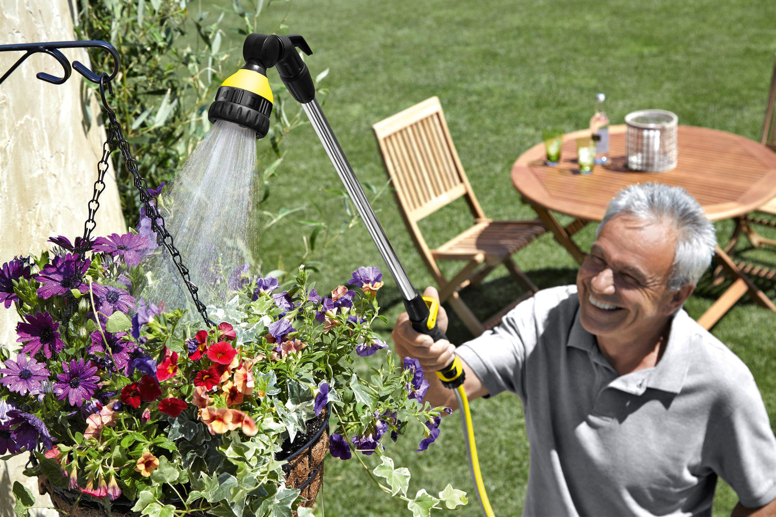 Kärchers ergonomiska spolrör Plus kombinerar perfekta detaljer med bekvämlighet. För mångsidig användning i trädgården. Spolröret Plus är idealiskt för bevattning av små och medelstora områden och trädgårdar. Det är även idealiskt för hängande korgar. Den perfekta kombinationen av elegans, förstklassiga funktioner och perfekt ergonomisk utformning gör spolröret Plus från Kärcher idealiskt för smidig bevattning även vid mer tidskrävande bevattningstillfällen. I korthet: den ideala lösningen för en mängd användningsområden i trädgården. Obs! Kärchers spolmunstycken och spolrör är kompatibla med alla tillgängliga klicksystem. Funktioner: ställbar spolhuvudsvinkel (180°), smidig enhandsreglering av flödet (inklusive PÅ-/AV-funktion), enkel förvaring på öppen krok, robusta material och sex spolbilder.